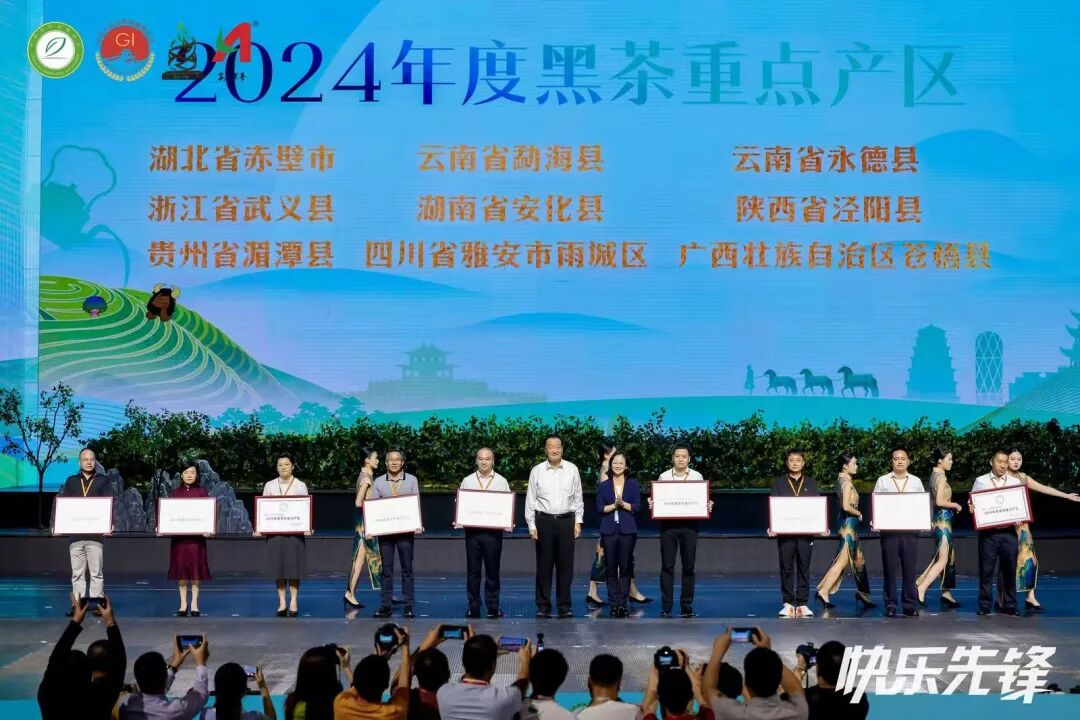 王庆会长为2024年度黑茶重点产区授牌,姚静波副会长公布中国“好黑茶”获奖产品。云南省勐海县和永德县获评为2024年度黑茶重点产区。云南中茶茶业有限公司、勐海陈升茶业有限公司、云南六大茶山股份有限公司、云南七彩云南庆沣祥茶业股份有限公司、勐海福海茶业有限公司、腾冲高黎贡山生态茶业有限责任公司、云南龙泉茶业有限责任公司、云南龙园号茶业有限公司等企业的多款产品获得推荐。协会还受邀出席黑茶产业新质生产力发展会议,协会副会长单位勐海陈升茶业有限公司,勐海雨林古茶坊茶叶有限责任公司、云南下关沱茶(集团)股份有限公司、勐海陈升茶业有限公司荣获“2024年度黑茶重点企业”称号。