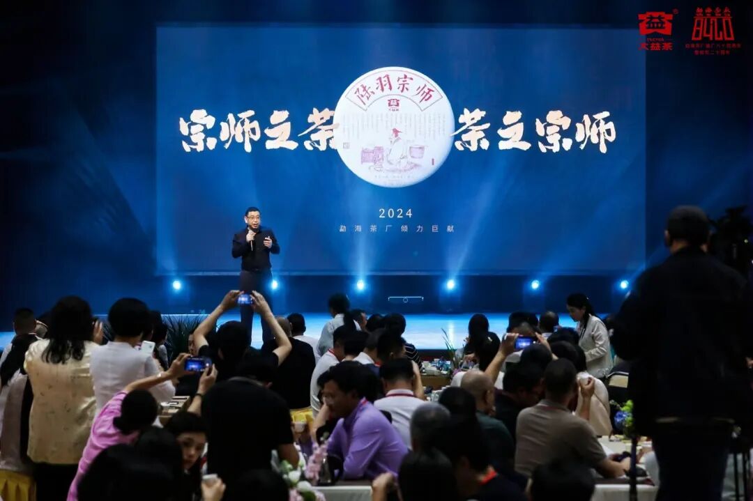 茶会现场进行了新品发布,在场嘉宾共同品尝并见证了大益普洱茶新品“陆羽宗师”首发。