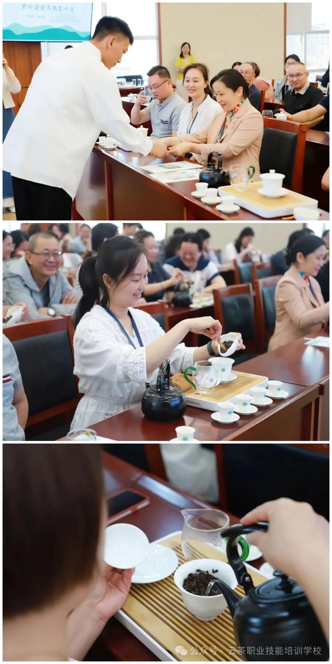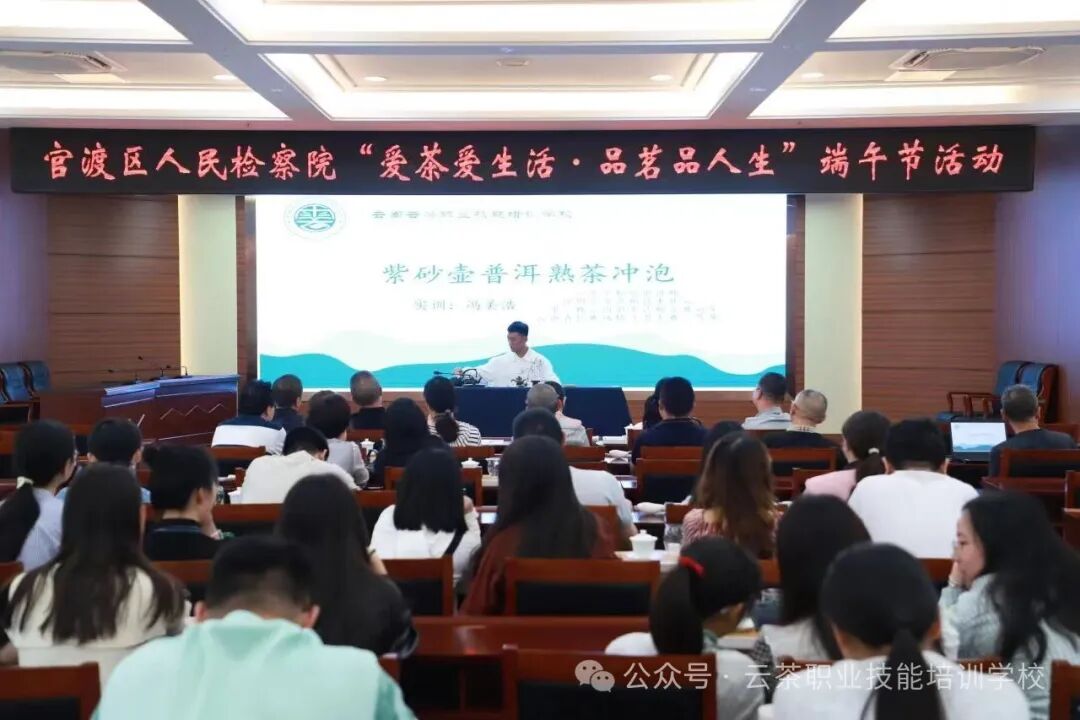 云南云茶职业技能培训学校与官渡区检察院开展“爱茶爱生活·品茗品人生”主题文化活动,此次云茶学校选派青年教师团队为官渡区检察院的全院干警提供茶艺、茶礼、茶文化教学指导,在学茶、泡茶、品茶中共赴茶道之旅,体验悠悠茗香,感受茶文化内涵,领悟人生哲学。